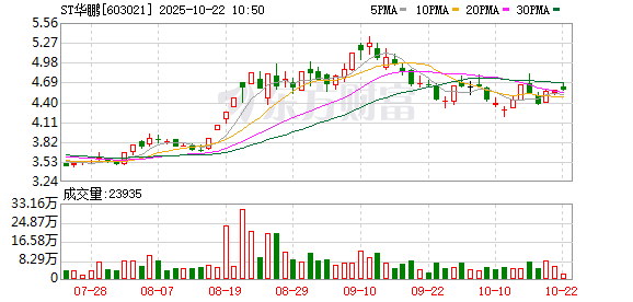股市必读:ST华鹏(603021)10月21日主力资金净流出83.41万元,占总成交额3.07%
