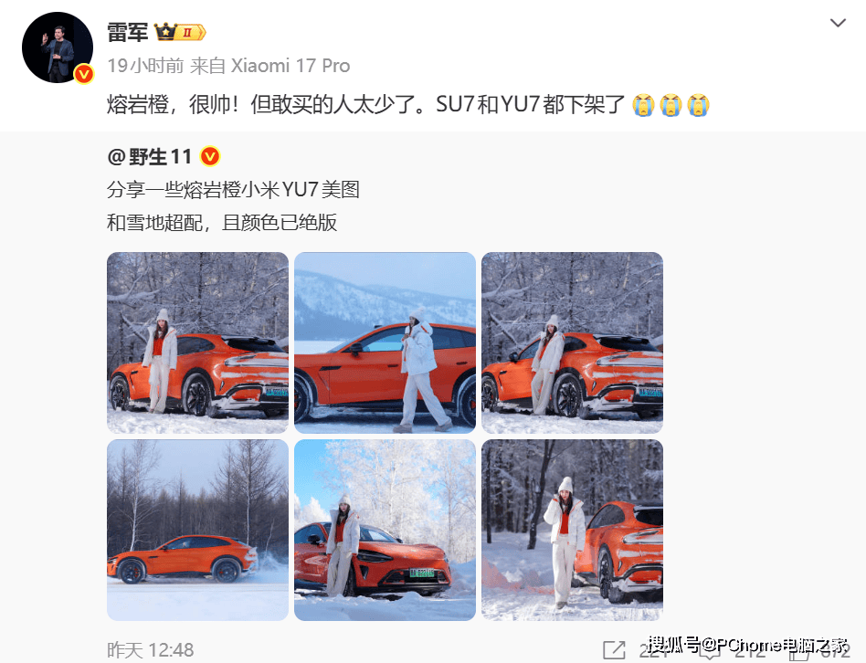 雷军点评小米汽车熔岩橙绝版:很帅,但敢买的人太少