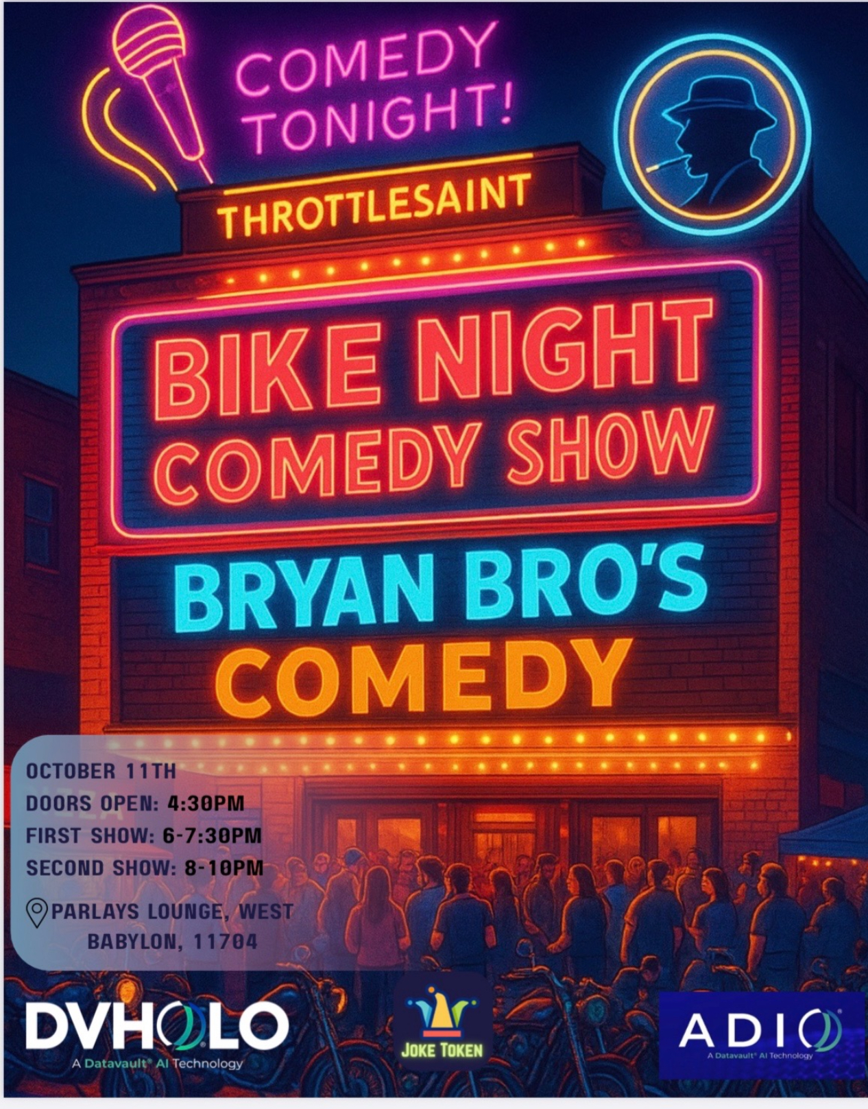 DVLT Joke Token Flyer -- October 11 On Saturday, October 11, at Parlays Lounge in West Babylon, New York, a live comedy showcase will feature Joke Token, powered by Datavault AI’s patented technologies, demonstrating how smart contract-based exchanges are transforming the comedy industry and creating new revenue opportunities for comedians, writers, and clubs. Company’s patented Information Data Exchange® (IDE) will deliver content monetization for comedians and comedic writers.Groundbreaking initiati ...