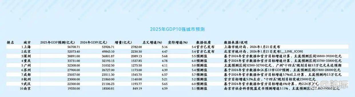 2025GDP十强预测实锤!京沪破5万亿断层领跑,苏州紧追广州,增速之王是它?