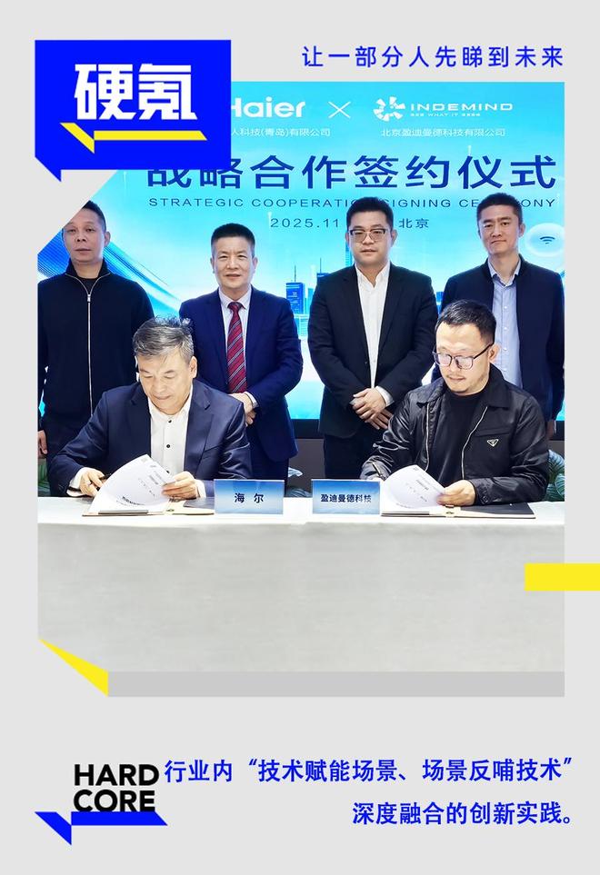 行业内"技术赋能场景、场景反哺技术"深度融合的创新实践。 此次双方战略合作的宗旨是充分发挥双方的业务特长和经营优势,按照优势互补、资源共享、携手共 建、共赢发展的原则,在高端产品及场景方案、营销宣传及渠道、服务及供应链、科技政策及投资等层 面进行深入合作。 在具体合作上,INDEMIND将作为海尔机器人领域的重要合作伙伴,依托海尔智家庞大家庭场景数 据、供应链整合能力,以及INDEMIND领先的具身机器人物理AI与设计优势,共同开展家用具身机器 人研发与落地、人机交互实现、家庭服务场景开发等方面的紧密合作。 海尔机器人负责人表示,自海尔机器人事业群成立以来,始终专注于AI智慧家庭的深度构建,在智能 陪护、智能中枢等关键领域持续深耕布局,致力于打通智慧家庭服务全链路。INDEMIND在机器人 AGI领域的技术沉淀,尤其是全局空间交互技术的商业化能力,与其高度契合。我们期待通过此次深度 合作,于明年AWE(中国家电及消费电子博览会)推出具有行业影响力的创新产品,为市场带来突破 性体验。未来,海尔机器人还将与INDEMIND展开持续深入的合作,共同开发包含不同形态、不同功 能、不同属性的终端产品,丰富智慧家庭生态矩 ...