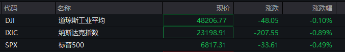 美股三大指数全线低开,热门中概股逆市走强。 当地时间11月13日,美股三大指数集体低开,纳指一度跌超1%。截至发稿,道指跌0.1%,纳指跌 0.89%,标普500指数跌0.49%。 据央视新闻,签字仪式上,特朗普表示,美国政府"停摆"损失了1.5万亿美元,真正计算出损失的总体 影响需要数周甚至数月的时间。 由于美国国会民主、共和两党在医保相关福利支出等方面存在分歧,国会参议院未能在9月底上一财年 结束前通过新的临时拨款法案,导致联邦政府维持正常运转的资金耗尽,于10月1日起"停摆"。 根据美国国会预算办公室10月底的计算,6周"停摆"使得美国第四季度的年化GDP增速被拉低1.5个百分 点,其中约70亿至150亿美元的经济损失是不可逆的,毕竟拖欠的工资和救济金可以补发,但"停摆"期 间机场取消的航班、商店餐馆损失的营业额、景点关门失去的收入,都是难以日后弥补的。 此外,美国消费者信心指数在11月暴跌至三年低点,较上月下降6%,较去年同期下降近30%。 10月经济数据或"断供" | 代码 | 名称 | 现价 | 涨跌 | 涨跌幅 | | --- | --- | --- | --- | --- | | DJI | ...