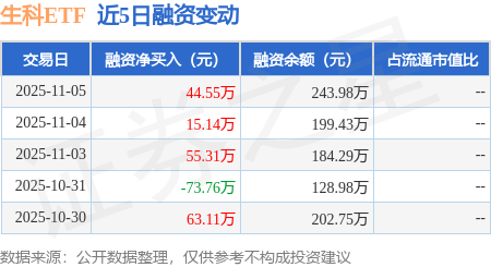 生科ETF:11月5日融资净买入44.55万元,连续3日累计净买入114.99万元