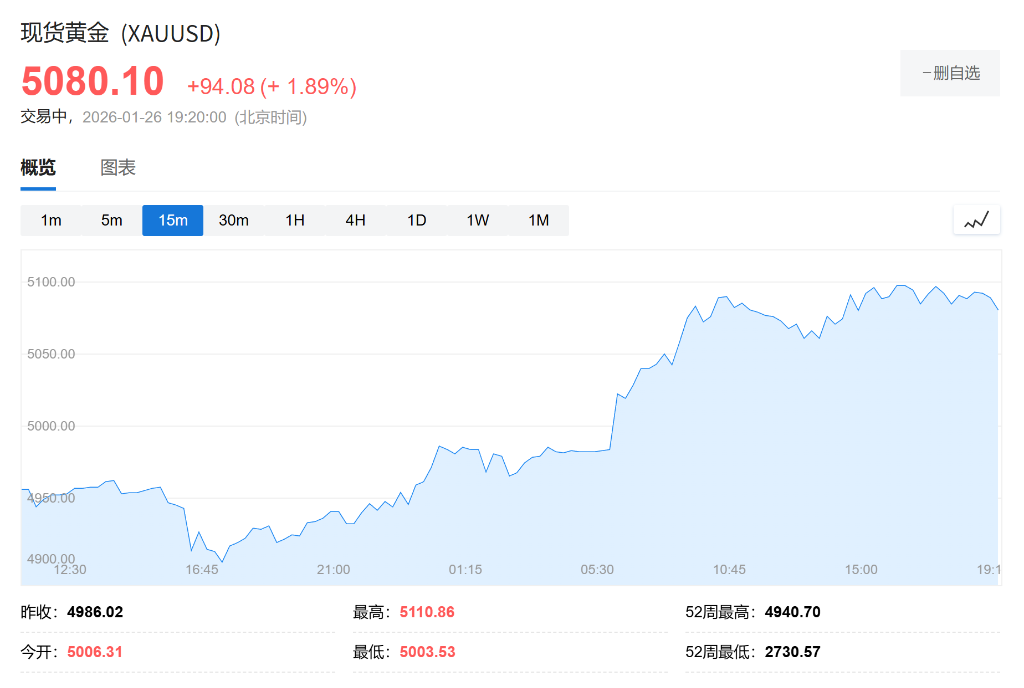 金价狂飙破5100美元!创40年来最大单月涨幅,全球动荡驱动避险潮