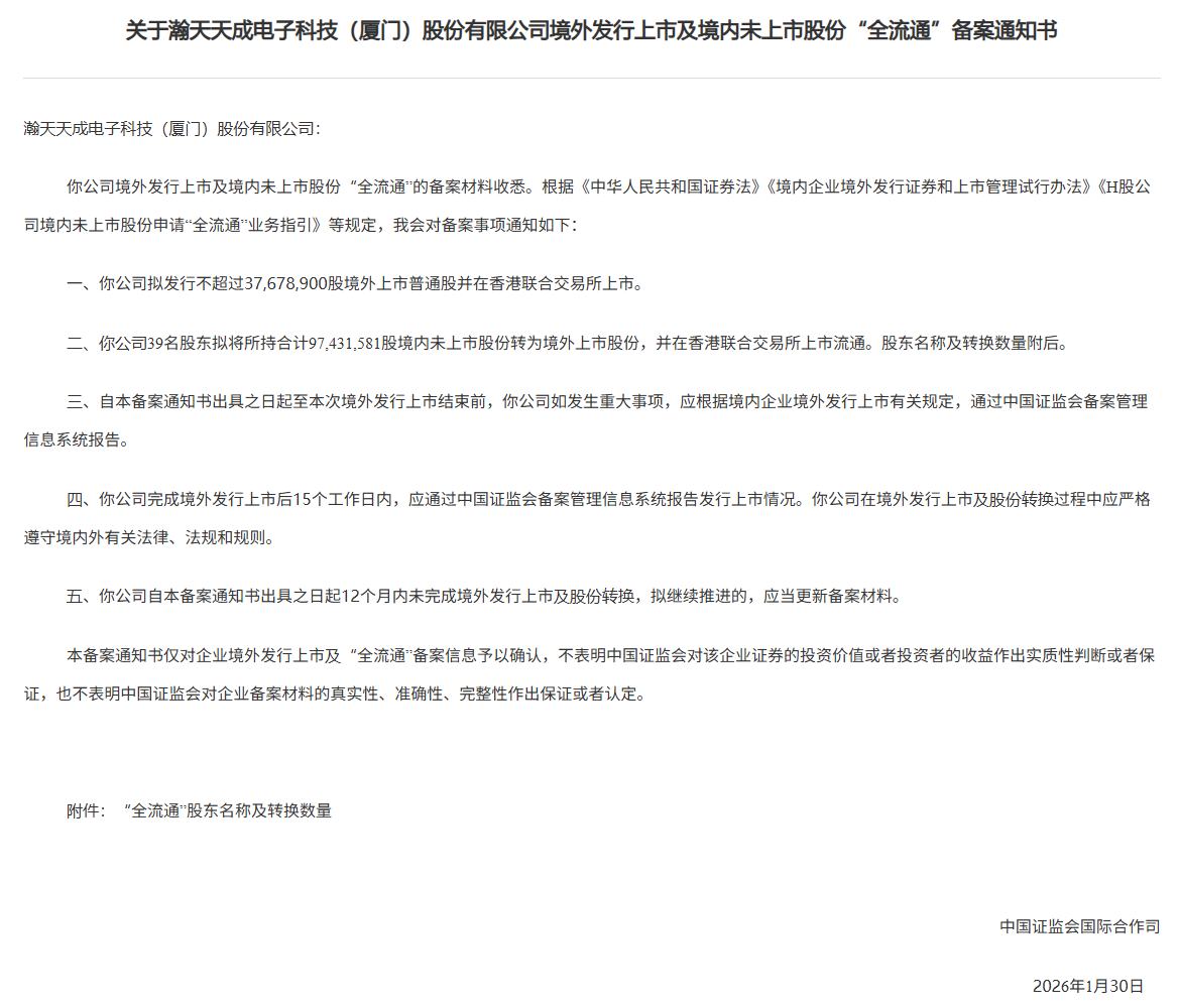 新股消息 | 瀚天天成港股IPO及境内未上市股份“全流通”获中国证监会备案