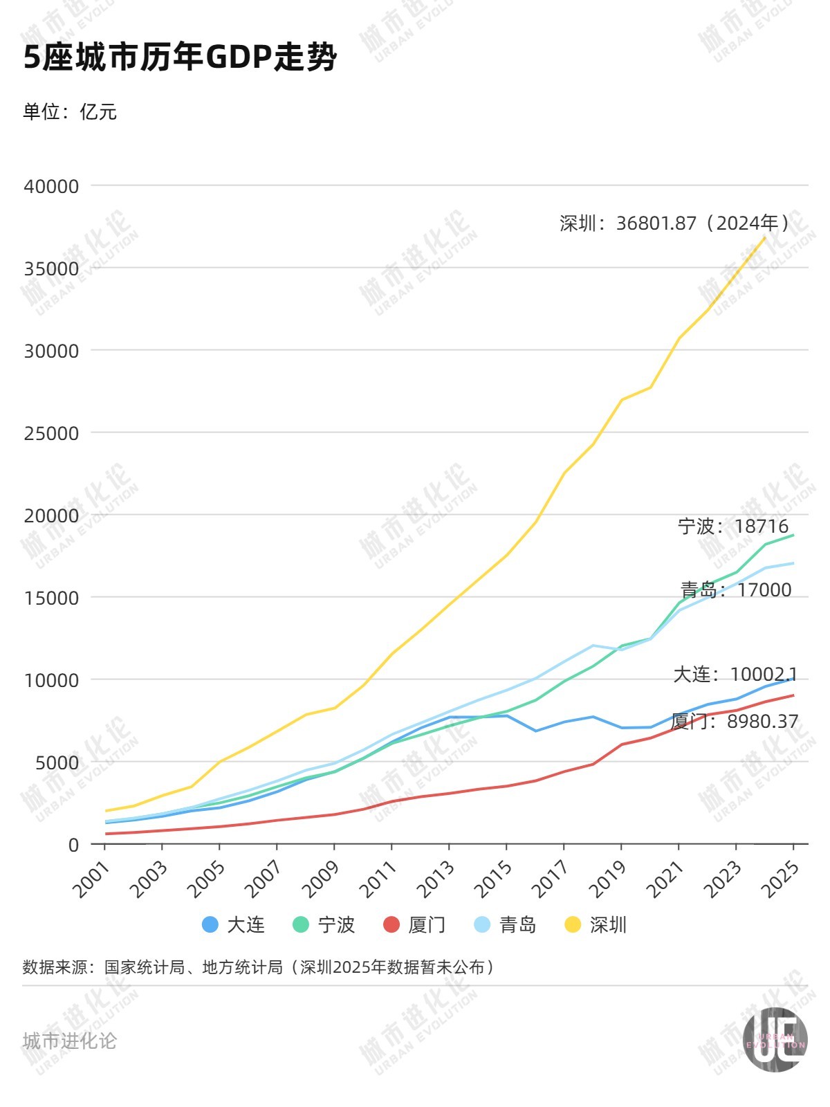 厦门GDP发展现状与目标 - 2025年厦门GDP为8980.37亿元,同比增长5.7%,未能如期实现“十四五”期间突破万亿元的目标[1] - 预计还需要两三年时间,厦门GDP才能完成万亿跨越,新的时间线被划在“十五五”期间[1][4] 经济发展挑战与结构性问题 - 2023年厦门GDP增速为3.1%,低于全国(5.5%)和福建(4.5%)平均水平,主要失分项是工业[4] - 2023年厦门二产增加值同比下降2.8%,二产占比和工业占比降至2011年以来最低水平[4] - 厦门二产占比从2011年的50.6%整体下降至2024年的36.6%,工业支撑明显不足[8] - 经济发展存在路径依赖,过去主要靠房地产带动,地价高限制了制造业发展,缺乏强大制造业集群[11] - 面临产业结构贸强工弱、先进制造业基础支撑不足、城市空间拓展过于依赖房地产业等问题[11] 工业与制造业横向对比 - 2024年,厦门二产增加值规模在五个计划单列市中排名垫底,仅为深圳的1/5、青岛的1/2[8] - 2024年,厦门二产占比(36.3%)在计划单列市中居第三位,低于宁波(43.4%),高于青岛(34.2%)[8] - 在2024年中国先进制造业百强市榜单中,厦门排第18位,但在计划单列市中低于深圳(第1)、宁波(第4)、青岛(第6),仅高于大连(第24)[12] - 相较2021年,厦门是计划单列市中唯一先进制造业百强排名下降的城市,显示竞争力正在减弱[13] 产业体系构建与制造业发展举措 - “十四五”以来,厦门构建“4+4+6”现代化产业体系,新增生物医药、新能源、新材料3个千亿产业链群[12] - 工业税收占比达35.5%,增长6.6%,其中先进制造业税收增长12.6%[12] - “十五五”规划建议提出深入实施先进制造业倍增计划,保持制造业合理比重,构建以先进制造业为骨干的现代化产业体系[4][11] - 2025年,厦门工业投资占全市投资比重提升至29%,扣除房地产以外的项目投资同比增长8.1%[12] - 2025年12月,厦门市委书记率队赴深圳,聚焦半导体和集成电路、新型显示、互联和精密制造等产业方向进行项目招引与合作对接[15] 制造业创新生态与核心难题 - 厦门先进制造业的突出短板是缺少大而强、优而精的企业[15] - 2025年,海辰储能以第268位的名次上榜全球独角兽企业500强,但作为厦门唯一上榜企业,“单兵突进”难以重塑创新生态[15] - 2026年,厦门计划强化企业创新主体地位,实施高新技术企业增量提质行动,目标新增规模以上国家高新技术企业100家以上、专精特新“小巨人”企业25家以上[16] - 厦门亟待破解产业链不强、产业空间分布碎片化、土地要素成本较高三大核心难题,以激活先进制造业发展动能[17] 城市空间发展与产业布局 - 厦门面积仅1700平方公里,腹地有限,加快岛外发展、拓展城市空间一直是转型关键[19] - 经过二十余年“提升本岛、跨岛发展”战略推进,到2025年,岛外常住人口、固定资产投资额、建成区面积占全市比重分别超六成、六成和七成[20] - “十五五”规划建议提出“3+1”城市发展总体框架,推动城市空间格局向多中心、组团式调整,核心是打造三大城市功能片区加一个主城区核心引擎[21][22] - 《厦门市国土空间总体规划(2021—2035年)》明确:本岛完善高端服务功能,合理控制人口规模;岛外提升城镇空间品质,高水平建设新城,引导人口稳步增长[24] - 同翔高新城用仅占厦门3.35%的土地,贡献了全市一半的工业投资,建成区面积从“十四五”初期的10.5平方公里扩展至23.5平方公里[27] - 未来新城建设的核心是产、城、人深度融合,公共服务资源向岛外转移必须与产业振兴同频共振,以产业集聚吸引人,以优质服务留住人[27]