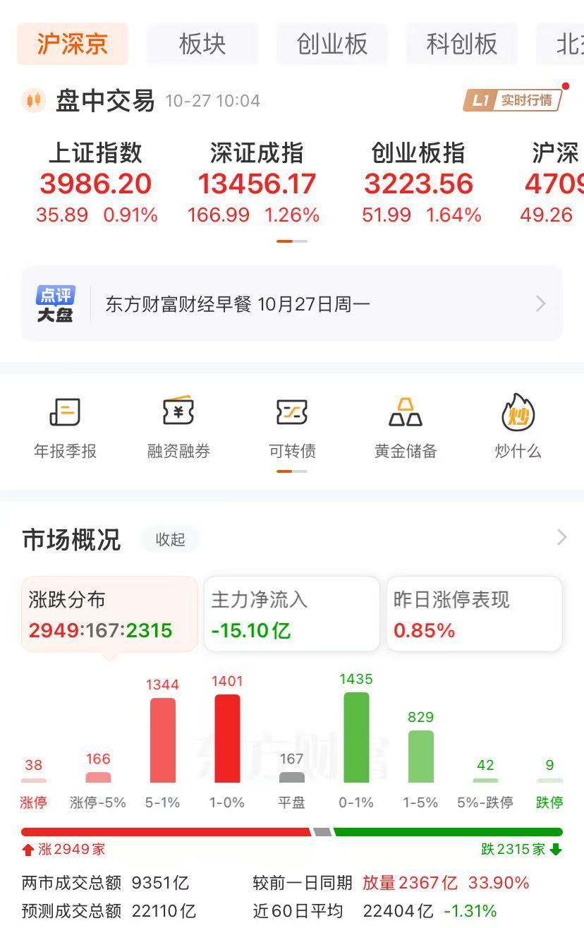 每经编辑|毕陆名 值得一提的是,中际旭创股价历史首次突破500元关口,截至发稿,该股涨1.85%,报503.14元/股,成交额超70亿元。 10月27日上午,全球股市总体表现强势。 27日,A股指数走强,创业板指一度拉升涨逾2%,深成指涨1.26%,上证指数涨超1%逼近4000点,券商股、银行股发力。 光刻胶、存储芯片、算力硬件等方向涨幅居前,沪深京三市上涨个股近3000只。 早盘固态电池概念震荡拉升,国轩高科触及涨停,湖南裕能、芳源股份、信德新材涨超10%,万润新能、海科新源、索通发展等跟涨。 量子科技概念快速走强,国盾量子涨超12%,达华智能3连板,格尔软件涨超9%、科大国创、神州信息跟涨。 早盘算力硬件股延续上周强势,仕佳光子涨超10%,生益电子盘中续创历史新高,东田微、东山精密、剑桥科技、工业富联跟涨。 存储芯片概念反复活跃,普冉股份大涨10%创新高,德明利、香农芯创、江波龙均创新高。 早盘光刻胶概念大幅高开,彤程新材封涨停,艾森股份、晶瑞电材涨超10%,南大光电、上海新阳、八亿时空、容大感光、雅克科技涨幅靠前。 此外,恒指涨0.92%,恒生科技指数涨1.35%。科网股继续走高,医药股强劲反弹,药明康 ...