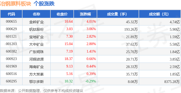 冶钢原料板块10月23日涨0.76%,金岭矿业领涨,主力资金净流入8064.13万元