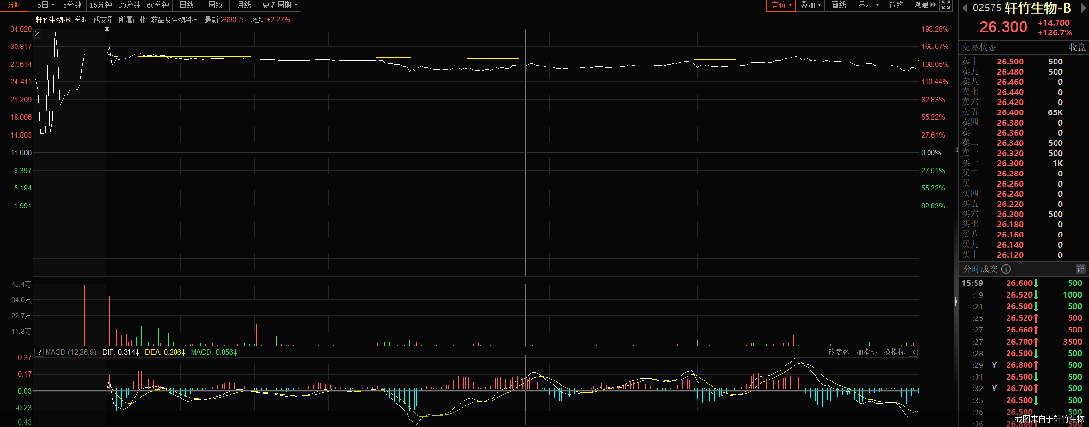 大涨126.72%!四环医药旗下轩竹生物登陆港交所,尚未实现盈利