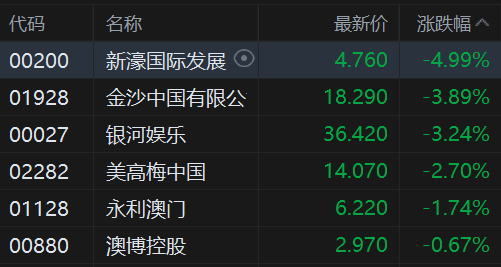 港股异动丨濠赌股继续跌势,新濠国际发展跌超5%,月内累计跌幅近25%