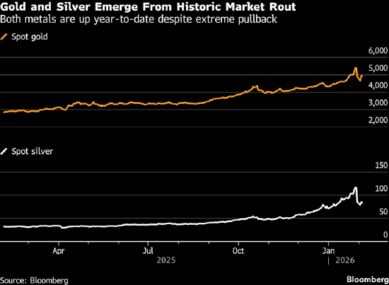 白银市场近期极端波动 - 现货白银价格在周五亚洲交易时段一度上涨6.2%,此前曾跌至每盎司64美元附近[1][6] - 前一交易日白银价格暴跌20%,回吐了上月一轮大涨带来的全部涨幅[1][6] - 自1月29日触及历史高点以来,白银价格已累计下跌逾三分之一[1][6] - 近期白银价格波动幅度和速度为1980年以来最剧烈水平[1][6] 市场流动性状况与机制 - 白银市场规模较小且流动性相对不足,导致其价格波动向来比黄金更为剧烈[1][6] - 波动率上升时,做市商会扩大买卖价差并缩减资产负债表使用规模,导致流动性在最需要时反而疲软[3][8] - 在市场秩序恢复前,波动率恐陷入自我强化循环[3][8] - 投机动能叠加场外交易流动性萎缩进一步放大了波动幅度[1][6] 近期价格驱动因素与市场行为 - 贵金属多年牛市行情上月加速上行,受地缘政治风险升级、市场对美联储独立性的担忧以及中国投机性买盘推动[3][8] - 整个1月,投资者持续增持贵金属大额头寸,大举涌入杠杆交易所交易产品及看涨期权[3][8] - 1月30日白银创史上最大单日跌幅,黄金也录得2013年以来最大单日跌幅[3][8] - 过去一周中国买盘大幅萎缩,国内白银价格相对国际基准由升水转为贴水,市场剧烈波动抑制买需[3][8] - 上海期货交易所白银持仓量跌至四年多来最低水平,反映头寸正被持续平仓[3][8] - 金瑞期货分析师表示多头止损离场,空头获利了结,且临近春节长假投资者倾向于轻仓过节[3][8] 黄金市场表现与机构观点 - 黄金价格在早盘下跌后转而走高,流动性更佳的黄金市场表现好于白银[1][5][6][10] - 本周多家银行及资产管理机构重申黄金长期看涨观点[5][10] - 富达国际一位在暴跌前抛售黄金的基金经理表示已准备再度买入[5][10] - 太平洋投资管理公司大宗商品投资组合管理团队负责人认为黄金上行趋势未受破坏[5][10] - 摩根大通策略师称比特币长期吸引力远胜黄金[5][10] 最新市场价格数据 - 新加坡时间下午2点25分,现货白银上涨4.5%,报每盎司74.09美元[5][10] - 现货黄金上涨1.7%,报每盎司4860.27美元[5][10] - 铂金及钯金价格下跌[5][10] - 彭博美元即期指数小幅下跌0.1%,但本周累计上涨0.4%[5][10]