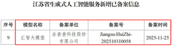 企查查"汇智"大模型通过国家网信办备案