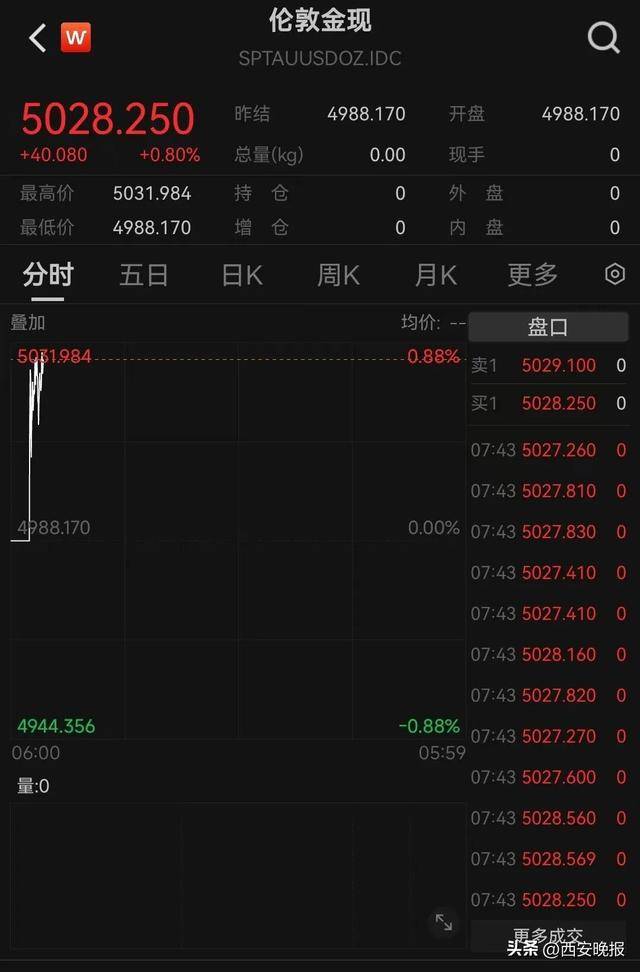 黄金站上5000美元