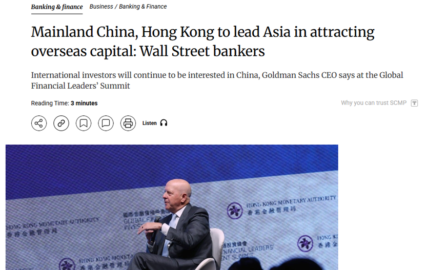 中国资本市场开放举措 - 证监会将系统谋划推出更多有力度开放举措,提升境外上市备案质效[1] - 计划扩大沪深港通标的范围,支持将人民币股票交易柜台和REITs纳入港股通[1] - 积极支持香港推出国债期货,丰富香港离岸人民币风险管理工具[1] 香港国际金融中心地位 - 坚定支持香港巩固和提升其国际金融中心地位,推动境内外市场良性互动[1] - 香港已成为连接内地资本市场与全球市场的重要桥梁,发挥机构、资本和人才优势[1] - 在全球投资组合分散化和寻求增长过程中,中国内地和香港将引领亚洲吸引海外资本[1] 国际机构对中国经济看法 - 高盛公司主席兼首席执行官表示中国是世界上最大且最重要的经济体之一[3] - 在全球资本配置者看来,在任何环境下中国都将保持吸引力[3]