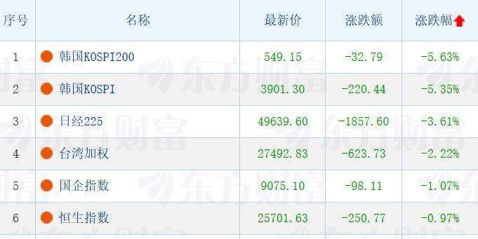 高盛等投行警告股市可能调整,忧AI泡沫!亚太股市集体下挫,韩股跌超5%触发熔断,日股跌超3%,恒生科技低开1.75%
