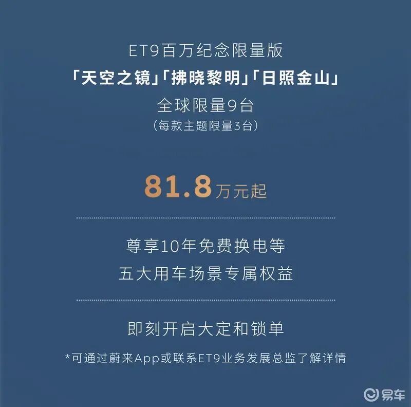 整车81.8万起!电池租用71万起!全球限量9台!蔚来ET9百万纪念限量版上市!