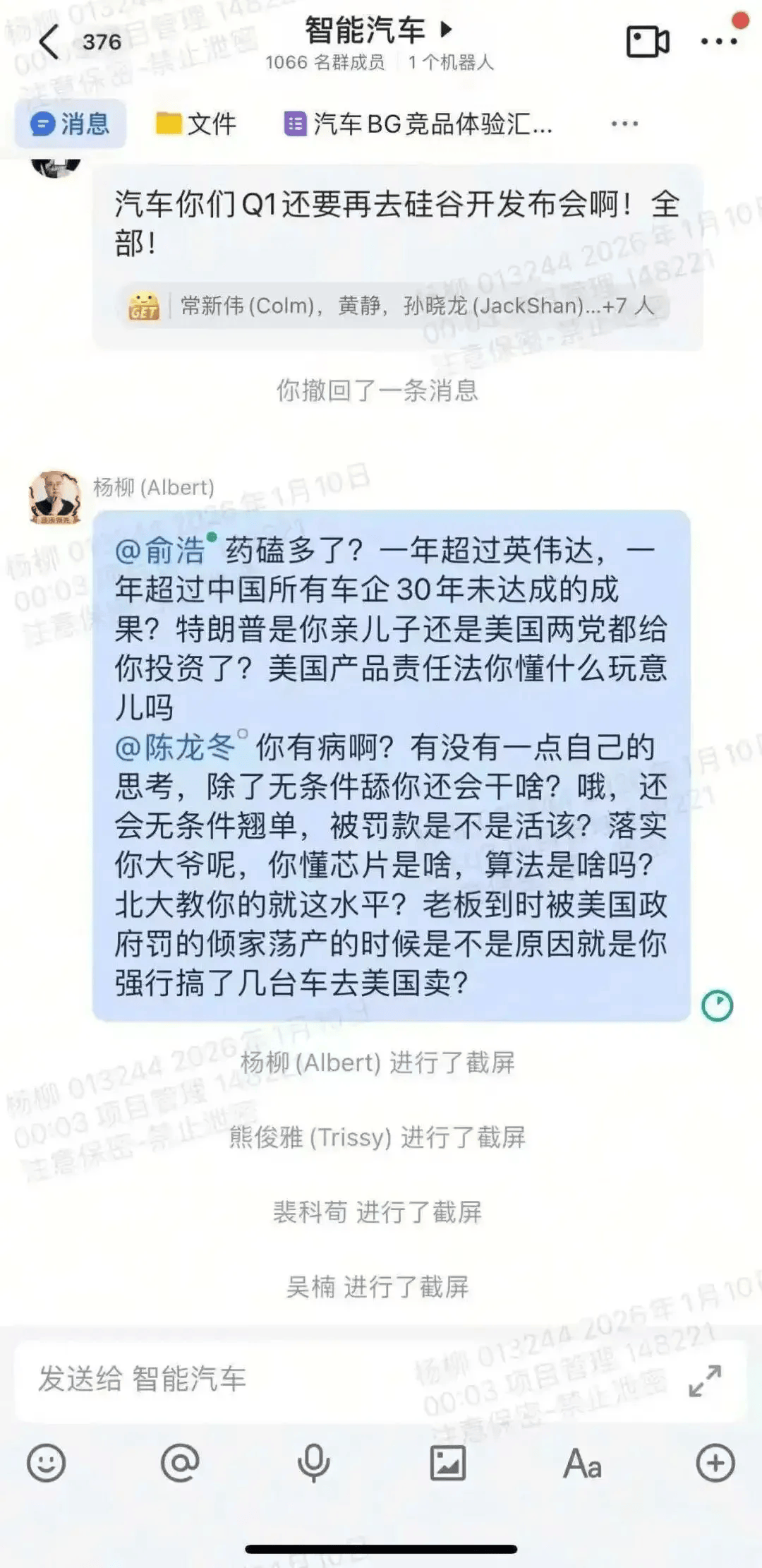 公司内部管理与战略争议 - 公司员工在内部千人大群中公开质疑创始人兼CEO俞浩及法定代表人陈龙冬 该员工以“药磕多了?”开篇 尖锐质疑“一年超过英伟达 一年超过中国所有车企30年未达成的成果?”的可行性[1] - 该员工警告公司对美国产品责任法缺乏认知 若“强行搞了几台车去美国卖” 可能导致“老板被美国政府罚得倾家荡产” 直指海外扩张的合规漏洞[1] - 该员工同时指责法定代表人陈龙冬缺乏独立思考、“只会无条件舔” 并质问其专业能力:“你懂芯片是啥 算法是啥吗?北大教你的就这水平?”[1] - 该争议事件发生于1月10日 发言员工在质问后主动截屏 但未第一时间对外传播 而是等到俞浩“百万亿美金生态”言论登上热搜后才放出[6] - 公司创始人兼CEO俞浩回应称 该员工早已提出离职 发言当天晚上十二点其飞书账号失效 于是该员工在临近十二点时发信息并截屏传播[12] - 俞浩表示自己不会在意提出不同意见的人 称公司内部历史上提出不同意见的人很多 自己有肚量[12] 公司创始人的公开言论与目标 - 公司创始人兼CEO俞浩在官宣造车后频频发表引发关注的言论 包括“一年超过英伟达”、“人类历史上第一个百万亿美金的公司生态”、“追觅应该人人财务自由”[4] - 在携程风波后 俞浩立下豪言表示当天就要推出对标携程的产品 让携程不再垄断[4] - 在员工质疑事件发酵后 俞浩先在朋友圈调侃称自己的微信“很快会被公关部门收上去” 随后又借着携程被调查一事 高调宣布要进军在线旅游市场[7] - 俞浩发微博回应争议 表示打造人类历史上第一个百万亿美金公司确实是其目标 但希望是在未来实现 而不是在一年之内实现[9][10] - 俞浩称 无论目标是否完全达成 对所有人都是好事 提供了一个观察样本 并承诺如果成功赚到钱 会慷慨地回报社会[11] 公司业务与市场表现 - 公司成立于2017年 起源于清华大学校内科技平台“天空工场” 以高速数字马达、智能算法、运动控制技术为核心 早期深耕智能生活家电领域[15] - 公司产品涵盖无线吸尘器、扫地机器人等 于2017年加入小米生态链后迅速发展[15] - 2024年 公司扫地机全球销量达396万台 同比增长近60%[15] - 截至2024年底 公司海外营收占比达65% 业务覆盖全球100多个国家和地区[15] - 截至2024年底 公司以18.2%的零售额份额稳居中国清洁电器线上市场首位[15] - 自2025年下半年以来 公司开启跨界扩张 已陆续进军牙刷、显示器、汽车、洗衣机、冰箱、手机、空调、燃气灶、热水器、洗碗机、净水器、宠物用品等多个市场领域[15] 智能汽车项目相关动态 - 内部聊天截图显示 有信息提及“汽车你们Q1还要再去硅谷开发布会!全部!” 这被外界解读为是在宣布追觅汽车的发布会即将到来 并引发了炒作质疑[8]