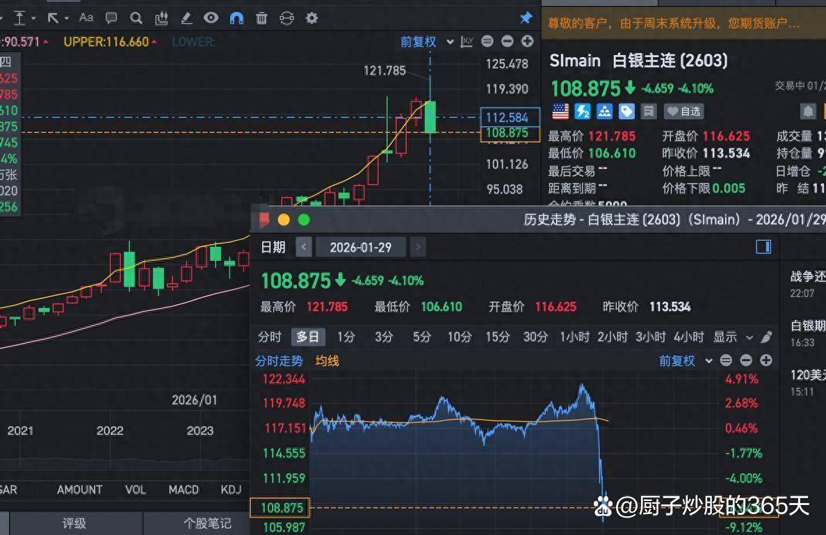 贵金属市场暴跌事件核心观点 - 2026年1月29日深夜,黄金和白银价格在数小时内发生极端暴跌,其直接触发因素是美联储释放鹰派信号与交易所上调保证金要求,深层原因则源于前期价格过度上涨、投机杠杆过高以及市场情绪逆转 [1][3][4][11][12][14] 价格暴跌的具体表现 - 白银期货价格从上涨约7%的122美元附近,直线下跌至108美元以下,从最高点算起跌幅超过12% [1] - 黄金价格从上涨约6%的5600美元/盎司附近,狂泻至5200美元/盎司,从高点坠落幅度达到10% [1] - 暴跌过程中,白银期货市场成交量急剧放大至平时水平的数倍,持仓量大幅减少,呈现恐慌性抛售特征 [23] 暴跌的触发与催化因素 - **美联储鹰派信号**:美联储1月议息会议维持3.5-3.75%利率不变,主席鲍威尔表示关税政策对通胀的推升影响将持续至2026年中,暗示利率将在高位维持更长时间,3月降息预期落空 [3] - **交易所上调保证金**:芝商所于1月28日通知上调白银期货保证金,非高风险账户要求从9%提高至11%,高风险账户从9.9%升至12.1%,此为短时间内第二次相关调整 [4][5][6] - **市场连锁反应**:保证金上调导致高杠杆投机者面临资金不足,引发集中抛售与止损踩踏,由于白银市场投机资金占比高、持仓集中,下跌速度和幅度被放大,并拖累黄金 [11] 暴跌的深层市场背景 - **前期涨幅巨大,估值泡沫化**:从2025年初至暴跌前,现货黄金价格从3800美元/盎司涨至5200美元以上,涨幅超过34%;现货白银价格从35美元/盎司附近涨至117.69美元的历史最高纪录,涨幅达234% [12] - **投机杠杆高企**:2025年白银价格累计上涨超140%,2026年首月涨幅又超58%,极端涨幅背后是大量利用高杠杆的投机资金 [8][9][10] - **市场情绪与结构逆转**:地缘政治风险带来的避险溢价短期消退,全球市场风险偏好变化,资金从贵金属流出;暴跌前金银比价被压得很低,显示白银投机热度远超黄金 [15][16] 对关联资产与市场的冲击 - 亚洲市场开盘后,与贵金属相关的股票资产应声大跌,投资者担心持有相关存货或头寸的公司资产价值缩水 [18][19] - 白银矿业公司股价、追踪金银价格的ETF基金及一些结构性金融产品均承受巨大压力 [26] - 市场波动率指标短时间内飙升,显示投资者极度焦虑;资金流向显示有显著资金流入波动率衍生品和美元现金资产进行避险 [26] 历史参照与技术影响 - 历史类似场景曾在2011年出现,芝商所连续五次上调保证金后,白银价格在随后几周内暴跌近30% [21][22] - 暴跌后市场技术图形被完全破坏,长期上升趋势线被击穿,基于趋势跟踪的交易系统发出卖出信号,可能引发程序化交易的进一步抛售 [26]
