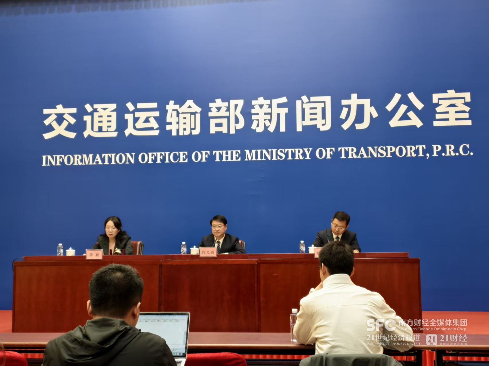 交通运输部新闻发布会现场,拍摄:张旭 货运方面,前三季度,完成营业性货运量432.5亿吨,同比增长3.89%,其中三季度同比增长3.9%、增速较二季度加快0.9个百分点。前三季度铁路、公路、 水路、民航货运量分别完成39.1亿吨、319.1亿吨、74.2亿吨和740万吨,同比分别增长2.8%、4.1%、3.7%和14%。 21世纪经济报道记者周潇枭见习记者张旭北京报道 10月29日,交通运输部举行新闻发布会,介绍前三季度交通运输经济运行情况。数据显示,前三季度,我国货运量平稳增长,跨区域人员流动量持续增加, 交通固定资产投资规模保持高位。 港口货物吞吐量增长较快,外贸集装箱韧性较强。前三季度,完成港口货物吞吐量135.7亿吨,同比增长4.6%,其中三季度同比增长5.8%、增速较二季度加 快1.1个百分点。完成集装箱吞吐量2.6亿标箱,同比增长6.3%,分结构看,内贸、外贸吞吐量同比分别增长3.2%和8.4%。 人员流动量方面,前三季度,完成跨区域人员流动量506亿人次,同比增长3.1%。分方式看,铁路、民航客运量分别完成35.4亿人次和5.8亿人次,同比分别 增长6%和5.2%;公路完成人员流动量462.8亿 ...