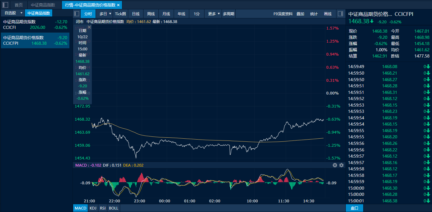 原油及能化板块 - 原油及相关品种午盘突然拉涨,沥青主力合约以2.95%的涨幅领涨商品市场,SC原油、高低硫燃料油和液化石油气均收涨超2% [2] - 国际油价在逼近年内低位后支撑显现,美国与委内瑞拉之间局势发展的不确定性给油市带来扰动 [2] - 沥青反弹动能强劲,成本端企稳叠加需求改善预期,本周77家重交沥青企业产能利用率环比下降4.7个百分点至31.1%,11月地炼沥青排产量环比将下降18.2% [3] - 油价走升带动PTA、PX、苯乙烯、塑料等主要化工品均录得1%左右及以上的涨幅 [3] 贵金属板块 - 贵金属出现抛售,沪金、沪银主力合约分别收跌3.92%和3.86%,自高位大幅回落 [4] - 黄金市场波动率显著攀升,10天历史波动率最高触及43.4,已超过今年4月极端行情时的高点36.2 [4] - 支撑黄金的宏观环境似乎并未发生根本性逆转,但波动率的持续走高为本次大幅回调埋下伏笔 [4] 油脂油料板块 - 三大油脂全线收跌,棕榈油主力合约以1.69%的跌幅居首,受隔夜美豆油走弱及印度需求减弱预期影响 [5] - 马棕10月前20日产量和出口增幅均有所下滑,预计10月马棕继续小幅累库,棕榈油缺乏实质性利多 [5] - 油脂板块受宏观环境和情绪影响短期有所回落,但整体预计维持震荡运行 [5] 市场整体表现 - 国内商品期货市场10月22日涨跌互现,中证商品期货价格指数收报1468.38点,较前一交易日下跌9.20点,跌幅0.62% [1] - 集运欧线延续反弹,收盘涨超2% [3]