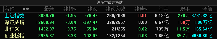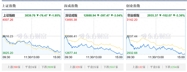 收盘丨深成指、创业板指均跌超3%,全市场近4800只个股下跌
