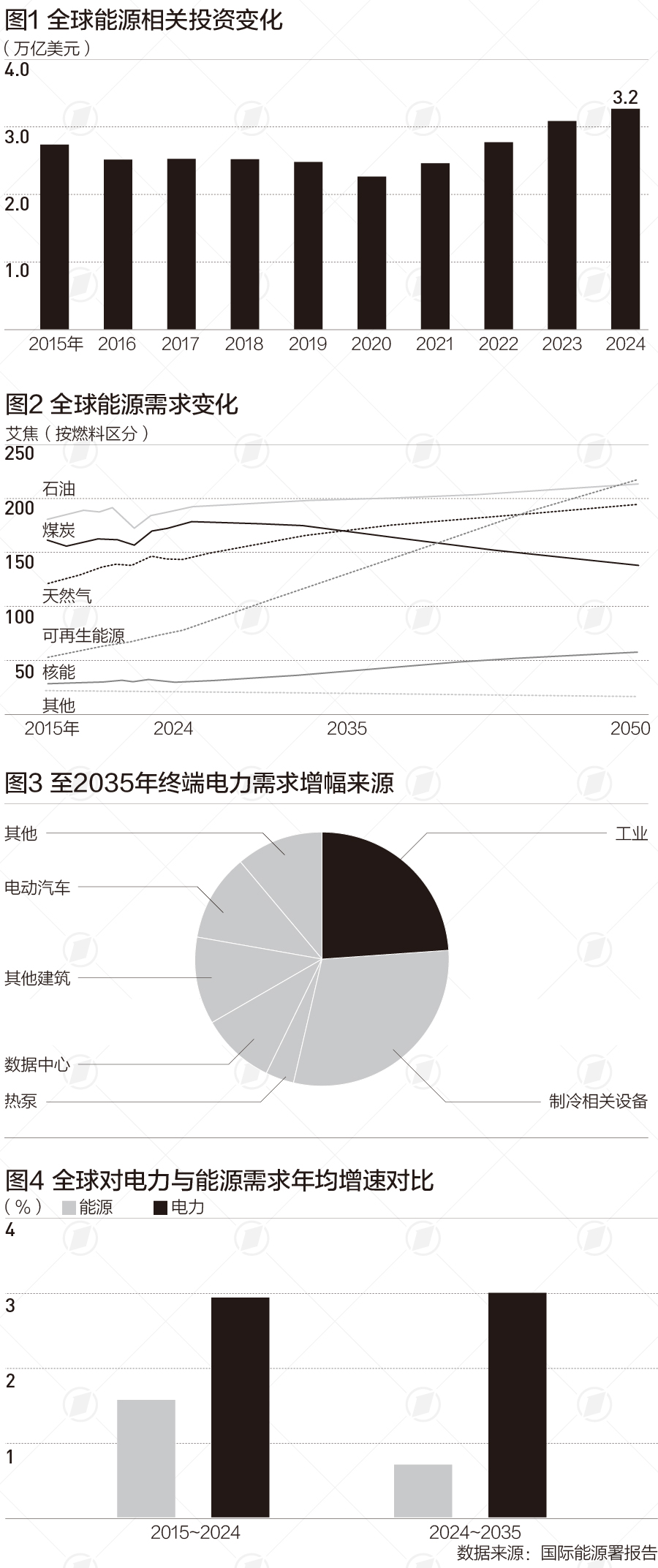全球数据中心投资或达5800亿美元。 "多年来,外界一直强调电力在全球经济中的作用越来越大。如果说去年世界正在快速步入电力时代,那么今年,电力时代已经 到来了。"在近日发布的国际能源署(IEA)年度旗舰报告《2025年世界能源展望》(下称《展望》)中,IEA执行主任法提赫· 比罗尔如是表示。 今年《展望》基于当前政策情景(CPS)、声明政策情景(STEPS)、净零排放情景(NZE)三大模型,勾勒全球能源未来图 景。 在所有情景中,《展望》称,一个普遍趋势是未来几十年全球对能源服务的需求将持续增长,不仅仅在交通出行领域,供暖、 制冷、照明及其他家庭和工业用途的能源需求在增加,与此同时数据和人工智能相关服务的需求更是不容忽视。 由此,全球能源需求将从目前的654艾焦(EJ)增加到2035年的705艾焦,这一增幅大致相当于欧盟目前的能源需求。投资者也 在积极响应这一趋势。IEA数据显示,2025年,全球能源领域的投资总规模约为3.3万亿美元,较2024年增长2%,创历史新高。 在新高的背后,所有预测情景的核心都是电力需求的巨大增长。到2035年,在"当前政策"和"声明政策"情景下,电力需求将增 长约40%。 比罗尔 ...
