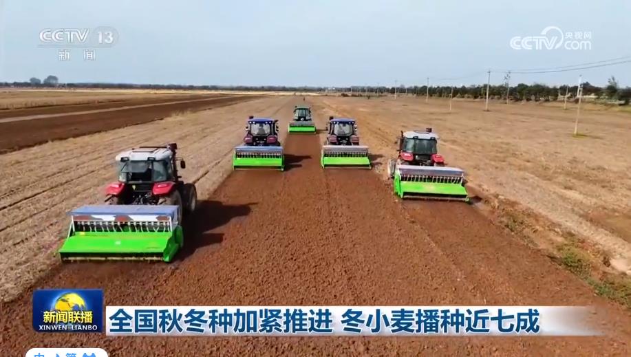 央视网消息(新闻联播):眼下,我国粮食主产区正抢抓农时分类精准施策,全力以赴推进秋冬种。 秋冬种面积占全年粮食播种面积的近四分之一,农业农村部最新农情调度显示,全国冬小麦播种近七成。 近几天,黄淮海主产区天气有利,当地加紧抢种冬小麦。 安徽强化精细整地,加快土壤散墒,避免因土壤偏湿造成烂耕烂种,影响出苗质量,并组织全省1700多名农技骨干,下沉一线服务 种粮大户,带动小农户实现大范围高质量播种。 山东提前将6000多万亩冬小麦播种任务分解到具体地块,并推广抗寒早熟品种和抗湿晚播技术,减轻晚播影响。在郯城县,当地组 织100多名农技人员包片指导农民加紧播种。 眼下,长江流域冬油菜正加紧播种,进度过九成。 江西统筹稻油轮作等资金2.4亿多元,支持扩种冬油菜,预计播种面积稳定在900万亩以上。 湖南冬油菜播种面积预计超过2000万亩,今年,当地发布10个主推品种,并因地制宜推广机械化直播等绿色增产技术。在沅江市, 当地安排奖补资金50多万元,推广应用精量一体化播种机。 近日,农业农村部组织12个小麦油菜技术指导组,分赴重点省份开展指导服务,确保秋冬种关键措施落实,提高播种质量。 ...