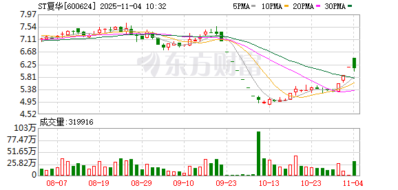 ST复华盘中涨停,已连收4个涨停板,截至9:25,该股报6.47元,换手率0.05%,成交量35.56万股,成 交金额230.07万元,涨停板封单金额为7247.05万元。连续涨停期间,该股累计上涨21.62%,累计换手 率为5.88%。最新A股总市值达43.95亿元。 据天眼查APP显示,上海复旦复华科技股份有限公司成立于1990年11月17日,注册资本67934.6942万人 民币。(数据宝) 近日该股表现 龙虎榜数据显示,该股因连续三个交易日内,收盘价涨幅偏离值累计达到12%的ST证券、*ST证券上榜 龙虎榜1次,买卖居前营业部中,营业部席位合计净买入445.90万元。 公司发布的三季报数据显示,前三季公司共实现营业收入4.93亿元,同比增长3.35%,实现净利 润-1801.65万元,同比增长44.06%,基本每股收益为-0.0265元。 | 日期 | 当日涨跌幅(%) | 换手率(%) | 主力资金净流入(万元) | | --- | --- | --- | --- | | 2025.11.03 | 4.94 | 0.26 | 345.73 | | 2025.10.31 | 5.01 | 1.58 | ...