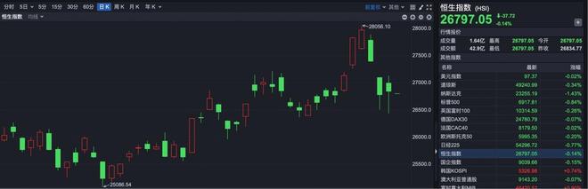 恒生指数上涨0.14% 恒生科技指数上涨0.74%