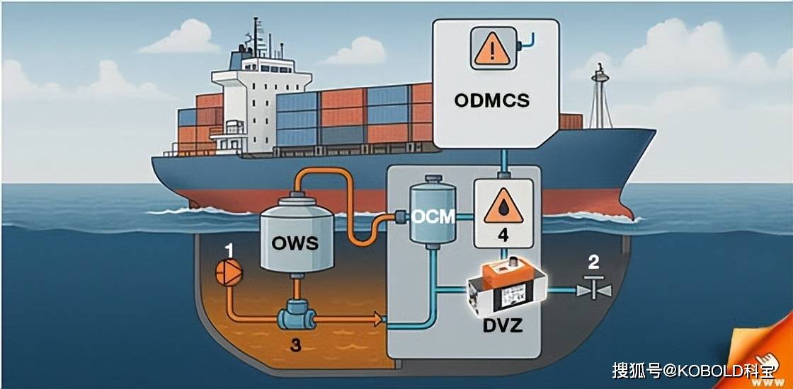 OWS OCM ODMCS DVZ 油水分离器 油含量监测器 油污排放监控系统 紧凑型涡街流量计 行业:船舶 产品:DVZ 舱底水监测系统中的DVZ流量验证 符合国际海事组织《防污公约》附件一的样品流量损失检测 1:泵 2:舷外 3:舱底 4:报警 该系统确保不会发生未经处理或未受监控的排放物排入船外。 DVZ安装于OCM测量池的样品出口处。该装置可确认样品水流是否以正常流速(≈1–3 L/min)通过测量池。若流量中断(例如阀门关闭、管道堵塞、水泵 停机),DVZ将触发"流量故障"警报并停止系统排放。如果没有像DVZ这样的流量传感器,系统无法向当局证明读数是有效的。 港口国监督检查或船级社批准需要这种保障措施。 KOBOLD DVZ紧凑型涡街流量计用于海洋环境合规应用。该应用在海运业(船载污染控制)中,特别是在400 GT以上的商船(货船、油轮、游轮等)的舱 底水处理系统中,其中油含量不超过15 ppm的报警装置属于强制性设备。 系统简要说明 通过油水分离器(OWS)系统进行舱底水监测,需采用集成式油类排放监测与控制系统(ODMCS),确保排放水符合MARPOL公约附件I标准——油含量 低于百万分之15(p ...