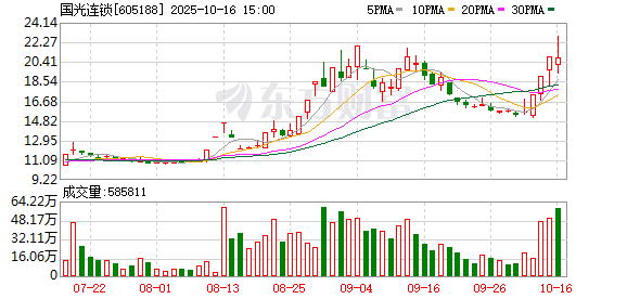 股价交易表现 - 国光连锁股票今日涨停,换手率为9.89%,成交额达9.82亿元,日振幅值为16.11% [1] - 龙虎榜数据显示营业部席位合计净卖出7312.86万元,前五大买卖营业部合计成交2.27亿元,其中买入成交7684.88万元,卖出成交1.50亿元 [1][1] - 今日主力资金净流入2159.97万元,其中特大单净流入3981.14万元,大单资金净流出1821.16万元,近5日主力资金净流入2.20亿元 [1] 龙虎榜交易明细 - 第一大买入及卖出营业部均为国泰海通证券股份有限公司总部,买入金额3182.48万元,卖出金额5766.89万元 [1][1] - 买入席位前五还包括东方财富证券拉萨团结路第一证券营业部(1146.54万元)、中国银河证券桂林中山中路证券营业部(1142.22万元)等 [1] - 卖出席位前五包括高盛(中国)证券上海浦东新区世纪大道营业部(3257.21万元)、摩根大通证券(中国)上海银城中路营业部(2220.95万元)等 [1] 历史表现与财务数据 - 近半年该股累计上榜龙虎榜17次,上榜次日股价平均涨0.43%,上榜后5日平均跌2.96% [1] - 根据公司半年报,上半年实现营业收入14.48亿元,同比增长6.50%,实现净利润1989.79万元,同比增长4.15% [1]