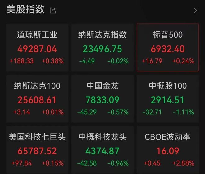 美股全线收高,“中国金龙”微跌,白银盘后剧烈跳水