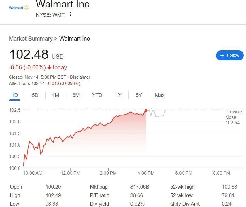 沃尔玛Q3业绩超预期,再次上调全年指引!股价盘前涨超3%