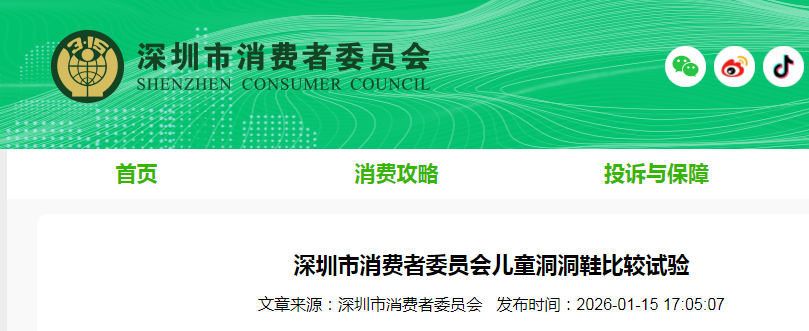 深圳市消费者委员会儿童洞洞鞋比较试验