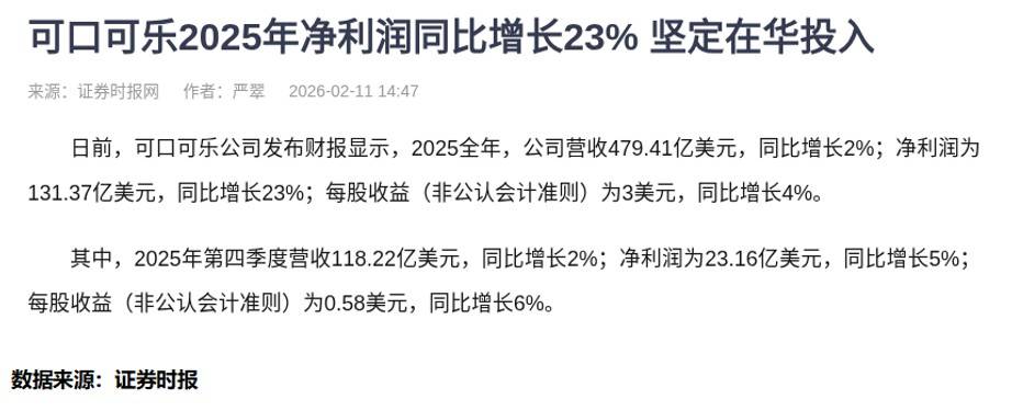 可口可乐公司:2025年净利润同比增长23%