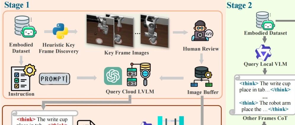 点击下方 卡片 ,关注" 具身智能 之心 "公众号 作者丨 Cheng Yin等 编辑丨具身智能之心 本文只做学术分享,如有侵权,联系删文 >> 点击进入→ 具身智能之心 技术交流群 更多干货,欢迎加入国内首个具身智能全栈学习社区 : 具身智能之心知识星球 (戳我) , 这里包含所有你想要的。 在机器人操作领域,"思考先于行动"(Think Before Acting)是突破端到端政策数据饥饿性的关键方向,但现有视觉 - 语言 - 动作(VLA)模型始终面临核心矛盾: 单一自回归解码器既要处理序列化推理,又要生成高维并行动作,导致运动控制精度下降、推理与动作缺乏强因果关联。 华中科技大学、清华大学等团队联合提出的 DeepThinkVLA ,通过 "混合注意力解码器 + 两阶段训练 pipeline" 的创新设计,完美化解这一冲突——既让模型具备连 贯推理能力,又保障动作生成的高效与精准,最终在 LIBERO 基准测试中实现 97.0% 的任务成功率,树立了 VLA 模型的性能新标杆。 DeepThinkVLA 的核心设计可概括为 " 以混合架构解决模态冲突,以两阶段训练强化因果关联,串联'基础推理学习 - ...
