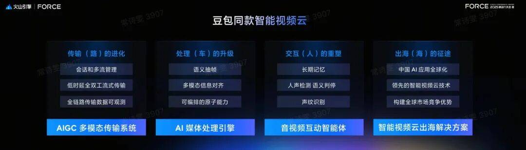 文 | 阑夕 今年的火山引擎Force大会,有一个细节的改变,很有意思。 火山引擎的视频云,以往都会在介绍Title上写明「抖音同款」,而在这次,取而代之的是一个全新但也眼熟的标签:「豆包同款」。 根据奥卡姆剃刀原则,如无必要,火山引擎不会如此费心的去「抠字眼」,这种改动,必然机遇市场风向的变化。 或者更直接的说,客户对于视频云的要求,彻底和以前不一样了。 根据IDC的数据显示,随着2022年视频云的产值首次超过100亿美金,以及大模型行业的从无到有,在AI加速融合到云服务的周期里,由多模态模型提供 的实时互动场景,以及智能化的媒体生产方案,叠加以前的视频化、高清化、出海化需求,未来5年的市场增速会高达20以上,相当于中国IT大盘增速的 两倍以上。 于是,就有了「江山代有才人出」的剧本出现。 · · · 「抖音同款」的价值倒不是消失了,当它已经成为火山引擎视频云的标准之后,继续强调的意义就不大了。 这就像是早年电商平台的供给参差不齐,一家店铺只要声明支持退换货,就能增强不少竞争力,后来退换货成了平台的普遍政策,店铺也就不再标榜这项 服务了。 对视频云有需求的企业客户,确实曾经会为「抖音同款」的能力买单,那时的 ...