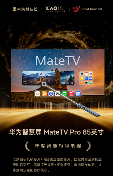 【环球网科技报道 记者 张阳】当电视行业迈入百年发展节点,一场关于性能、交互与场景的变革正在悄然发生。9月4日,华为智慧屏家族全新旗舰MateTV 正式发布,作为Mate家族史上最大旗舰产品,它承载着"用做手机的能力做电视"的核心理念,自上市以来便以黑马之姿搅动高端电视市场。第三方机构最新 数据显示,华为智慧屏 MateTV系列在高端电视市场份额跻身TOP3,实现"三分天下有其一"的行业地位,用硬核数据印证了其市场认可度。 这一性能跃迁带来的实际体验是颠覆性的:大型应用冷启动时间控制在2秒左右,系统动效丝滑,即便《决胜巅峰》等大型手游,也能在智慧屏上实现高帧 率流畅运行。搭配超大散热面积设计与强悍的持续性能输出能力,MateTV的游戏体验实现质的飞跃。 并且,华为智慧屏 MateTV的创新实力持续斩获行业权威背书,先后荣获八大重磅奖项, 包括中关村在线"GG100 2025 年度智能旗舰电视"、PConline "2025 智臻科技奖"、手机中国 "年度交互创新电视"、第一家电网 "2025 年最佳推荐产品奖"、智电网"2025 年度耀世智屏奖"、环球家电网"好产品奖"、泡泡网"年 度优秀产品"等荣誉。这些沉 ...
