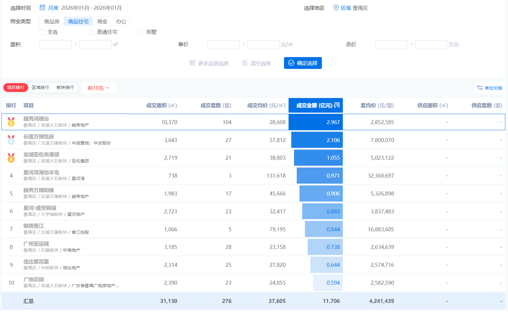 番禺1月销冠出炉!刘艳领衔,越秀鸿璟台夺魁