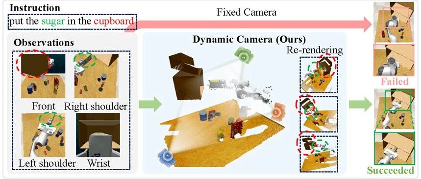 研究背景与问题 - 当前主流机器人视觉-语言-动作模型依赖单一或固定视角观测与共享视觉编码器,在复杂多任务操控场景中存在3D感知不完整和任务干扰严重两大核心挑战[3][5] - 固定视角易导致目标物体或机械臂末端被遮挡,造成场景理解缺失与动作预测失误,例如“将糖放入橱柜”任务中前视摄像头仅能捕捉橱柜而肩视摄像头仅能看到糖[7] - 共享编码器在处理视觉与语义差异大的任务时特征会相互纠缠,限制模型在多任务场景下的泛化能力与扩展性[7] 核心技术创新 - 提出Task-Aware View Planning框架,通过多视角探索策略动态选择最优虚拟摄像头位姿并进行重渲染,采用“Look-at模型”将摄像头位姿表示为5维向量确保视角可解释与优化[9][11] - 任务感知混合专家编码器通过跨模态专家路由融合语言指令与场景视觉信息,动态选择适配当前任务的专家编码器,并设置8个门控对应18项任务实现参数复用[12] - 采用三阶段训练策略:先进行固定视角预训练,再通过PPO算法训练视角探索策略,最后微调任务感知编码器与动作预测网络实现端到端协同[20] 实验性能表现 - 在RLBench基准测试的18项操控任务中平均成功率达到86.6%,超越RVT2的81.4%和ARP+的84.9%等固定视角基线模型[14] - 消融实验表明移除任务感知编码器后平均成功率降至85.6%,而用随机视角替代动态探索后性能骤降至8.9%,证明核心模块不可或缺[15][21] - 在未训练的“打开抽屉”任务中实现12.0%的zero-shot成功率,而无任务感知编码器的模型成功率为0,显示其知识迁移能力[16][22] 泛化能力与效率 - 真实世界鲁棒性测试显示在未知背景和物体场景下成功率分别达到90.0%,远高于Diffusion Policy的70.0%和60.0%[18][19] - 尽管动态视角重渲染增加计算成本,但平均推理时间仅0.436秒,较ARP+的0.394秒仅增加10.7%,通过采样加速与摄像头缓存实现性能平衡[22] - 在真实机器人平台Dobot Nova2上执行“堆叠碗碟”等任务时成功率显著超越Diffusion Policy,证明其在真实场景的适配性[23] 行业应用前景 - 该框架为家庭服务机器人和工业协作机器人等复杂场景应用提供技术支撑,首次实现“任务引导视角选择”与“视角适配动作预测”的协同优化[25] - 未来将优化反光或透明物体对点云重建的影响,并探索多传感器融合进一步扩展机器人操控的任务边界[25]