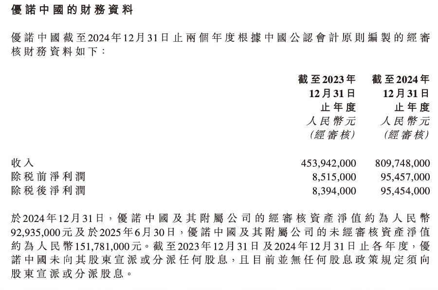 交易概述 - 天图投资拟出售其持有的优诺乳业约45.22%股权给昆山诺源睿源管理咨询有限公司,拟成交价约8.14亿元 [1] - 交易中由天图投资管理但未并表的主体所持约41.74%优诺股权亦将出售,总对价7.51亿元 [2] - IDG资本为此次收购的最终买方,收购总成本超过16亿元,另有消息称交易价格合计达18亿元 [2][3] - 天图投资预期因该出售事项录得合计亏损84.7万元 [2] - IDG资本计划保留优诺中国原有管理团队,以支持其区域扩张和产品创新 [4] 优诺中国财务表现 - 2023年优诺中国营收为4.54亿元,税后净利润为851.5万元;2024年营收增至8.1亿元,税后净利润大幅增长至9545.4万元 [5] - 根据经审核财务数据,2023年收入为4.53942亿元,除税后净利润为839.4万元;2024年收入增长至8.09748亿元,除税后净利润跃升至9545.4万元 [12] - 截至2024年12月31日,优诺中国经审核资产净值约为9293.5万元;截至2025年6月30日,未经审核资产净值增至约1.51781亿元 [12] 酸奶行业动态 - 2024年酸奶市场规模同比下滑10.68% [6] - 市场呈现两极分化,伊利低温酸奶业务通过新品实现显著增长,市场份额提升1.3个百分点;新乳业低温酸奶收入实现中高个位数增长 [6] - 行业价格战加剧,主流价格带从五年前的8-10元降至5元左右 [7] - 低端产品面临销售压力,而具有显著特色的中高端产品相对增长,但对品质要求越来越高 [7]