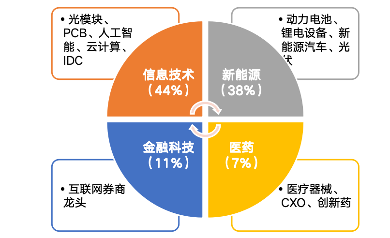 行情回顾及主要观点: 上周A股市场整体呈现下跌趋势,主要指数普遍回调:沪深300跌1.5%,中证500跌5.2%,中证1000跌4.6%,创业板50跌5.8%,科创50跌6.2%。交易面,A股 市场上周日均成交额在2.3万亿元左右,市场投资热情小幅回落。市场热点呈现快速轮动特征:煤炭、银行等高股息板块估值相对合理,受高切低资金大幅 增持;近期受黄金价格大涨影响,有色金属板块在阶段性修整后于周五上攻;前期科技热点板块如通信、电子等仍处于回调阶段。当前A股估值偏高,需关 注基本面改善带来的盈利支撑,国内资产注重"高切低"再平衡,建议均衡配置。 创业板为主要"三创(创新、创造、创意)四新(新技术、新产业、新业态、新模式)"的成长型创新创业企业提供直接融资平台。权重行业方面,创业板50 指数聚焦信息技术+新能源+金融科技+医药四大新质生产力赛道,科技成长属性纯粹。 图:创业板50指数四大赛道 创业板50ETF(159949):汇聚创业板优势领域的成长白马,聚焦于科技成长属性的龙头企业。当前估值42.18倍,近十年42.13%分位。 创业板50指数(399673.SZ)权重行业观点: 科技、AI、通信 创业板50指数涵 ...
