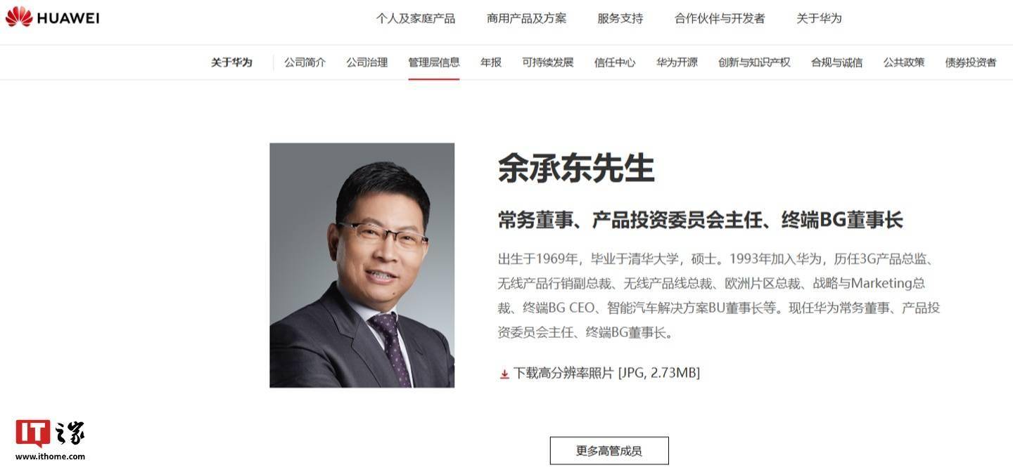 余承东增任华为产品投资评审委员会主任,仍担任终端 BG 董事长