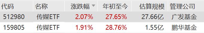 ETF午评 | AI应用题材逆势走强,传媒ETF涨超2%
