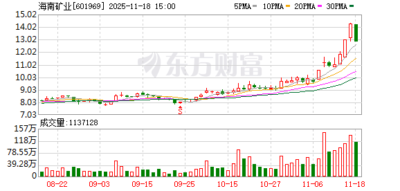 海南矿业跌停,沪股通龙虎榜上买入3997.43万元,卖出5772.79万元