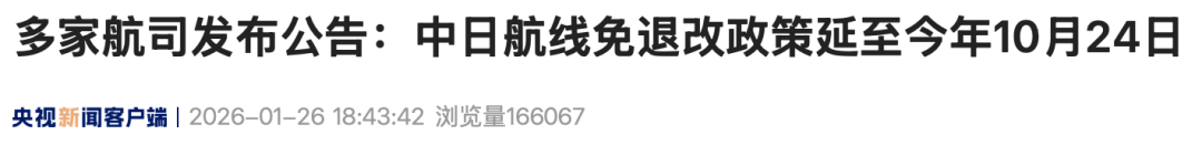 三大航司涉日航线免费退改签政策延长!此前已有游客取消行程