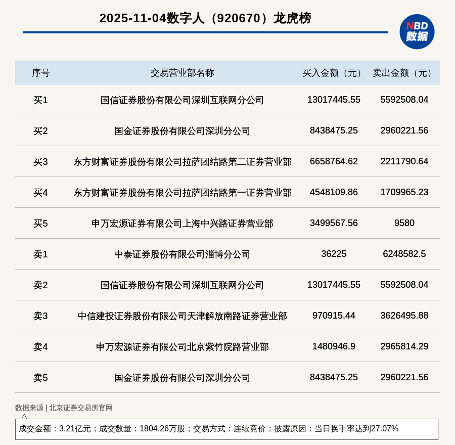 北交所上市公司数字人登龙虎榜:当日换手率达到27.07%