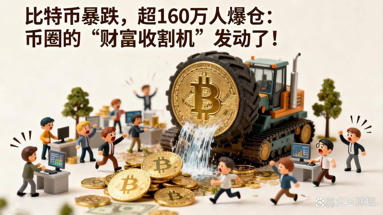 家人们,最近投资圈的大瓜,那必须是比特币暴跌,超160万人爆仓!这消息一出来,就像一颗炸弹,把整个币圈炸得人仰马翻,不少人都在这场暴跌里亏 得底儿掉。 还有,巨鲸抛售和监管施压也给市场带来压力。有1.2万枚比特币(约14亿美元)被转入交易所卖出,还传闻美国司法部要清算80亿美元涉案比特币,欧盟 新规也让比特币面临合规难题。 这一场暴跌,让不少投资者欲哭无泪。有的投资者捶胸顿足:"我前几天刚加杠杆追高,想着大赚一笔,结果全赔进去了,早知道就不这么贪心了!"还有人 开始反思:"投资还是得理性,不能盲目跟风,这币圈的钱,看着好赚,实则处处是坑。" 这次比特币暴跌,给整个加密货币市场敲响了警钟。它再次提醒投资者,币圈风险巨大,投资需谨慎。那些梦想着靠比特币一夜暴富的人,可得醒醒了,说 不定一不小心,就成了被"收割"的韭菜! 最惨的还是那些加了杠杆的投资者。据统计,24小时内,全球超164万人爆仓,192亿美元瞬间蒸发,币安交易所甚至出现单笔1379万美元的爆仓,相当于一 亿多人民币就这么打了水漂,真可谓"币圈一日,人间十年"。 这比特币好端端的,怎么突然就崩了呢?原因还挺复杂。一方面,特朗普放出要对多国加征10%-4 ...