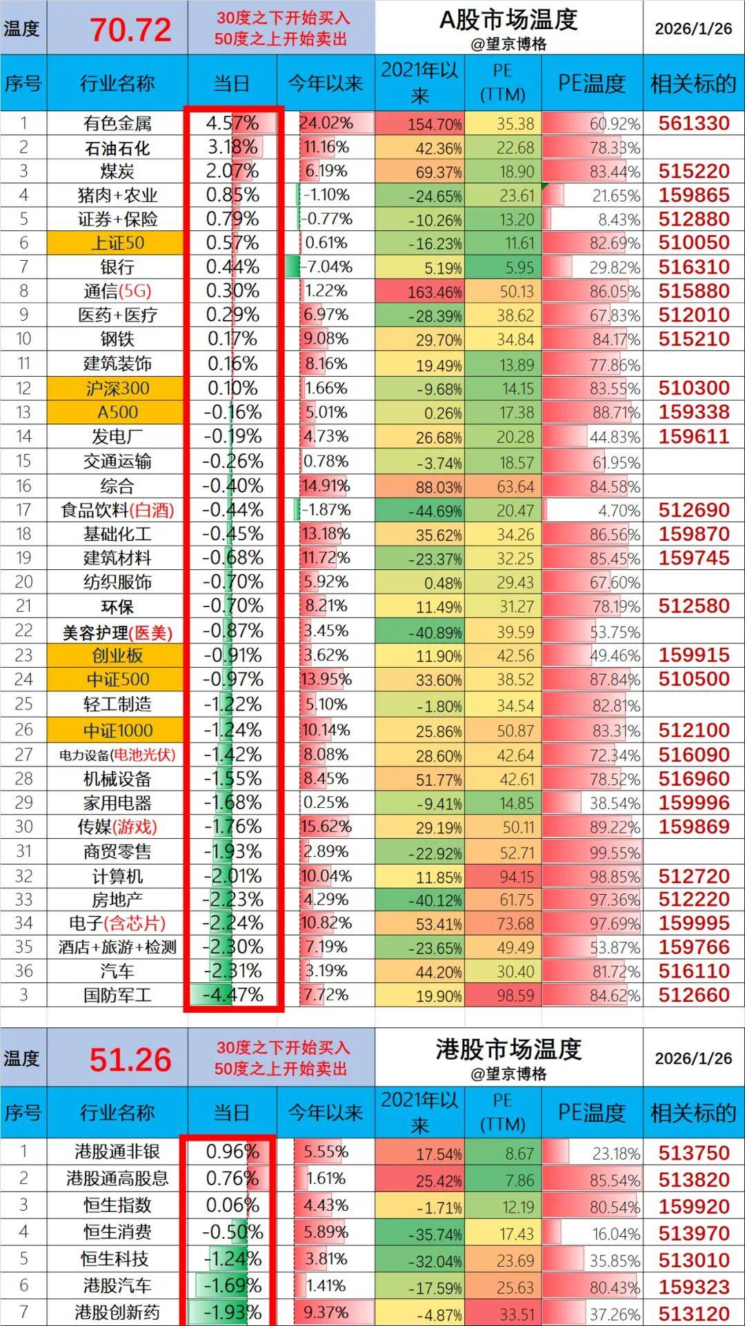 黄金白银有色的上涨会持续多久?2026年1月26日 市场温度
