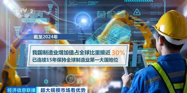 中国式现代化,是14亿多人口的现代化,规模空前。依托超大规模市场,我国成为全球唯一拥有联合国 产业分类中全部工业门类的国家。一起来看我国完整产业链的"世界之最"。 △央视财经《经济信息联播》栏目11月18日视频 截至2024年,我国制造业增加值占全球比重接近30%,已连续15年保持全球制造业第一大国地位。 在全球500种主要工业产品中,我国有220多种产量位居第一。我国生产的粗钢、水泥、电解铝占据全球 产量50%以上。我国生产了全球80%以上的光伏组件和70%的风电装备。新能源汽车产量连续10年位居 全球第一。 超大规模市场优势,为我国产业发展注入持续而强大的支撑力。完善的产供链体系,确保了生产制造的 自主可控和快速响应。超大规模市场如何推动高科技产业聚链成势? 一大早,一家位于苏州吴中区的服务机器人生产企业的物流中转场已是一派繁忙景象。十几辆满载零部 件的车辆排队进出,工人们操作叉车将货物从进货区快速转运至出货区。来自苏州本地一家扫地机器人 外壳前盖生产企业的运输员王远谋,正在登记送来的货品,作为当天的夜班运输员,这已经是他送到的 第五批货了。王远谋表示,现在效率比过去提高超50%。 我国造船业三大指标:造 ...